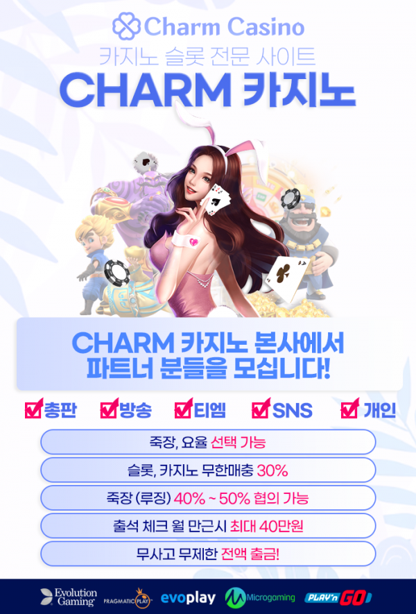 Charm 카지노 파트너(총판) 모집중 (죽장 40% ~ 50%)